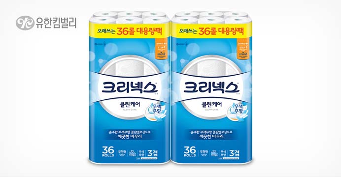 크리넥스 클린케어 롤화장지 36롤 2팩